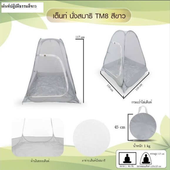 ขนาดเหมาะถวายพระ หรือนำไปนั่งสมาธิ กรรมฐานที่วัด เป็นผ้ามุ้งโปร่งรอบด้าน