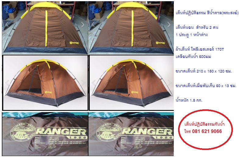 ผ้ามุ้ง : ผ้ามุ้ง โพลีเอสเตอร์ทอละเอียด เสาเต็นท์ : ไฟเบอร์กลาสขนาด 7 มิลลิเมตร